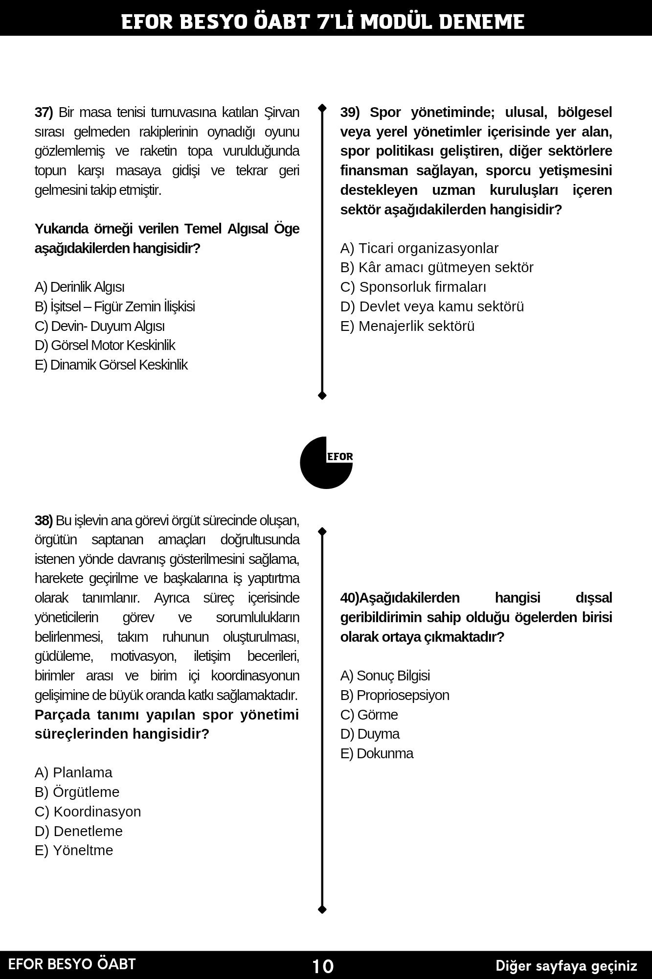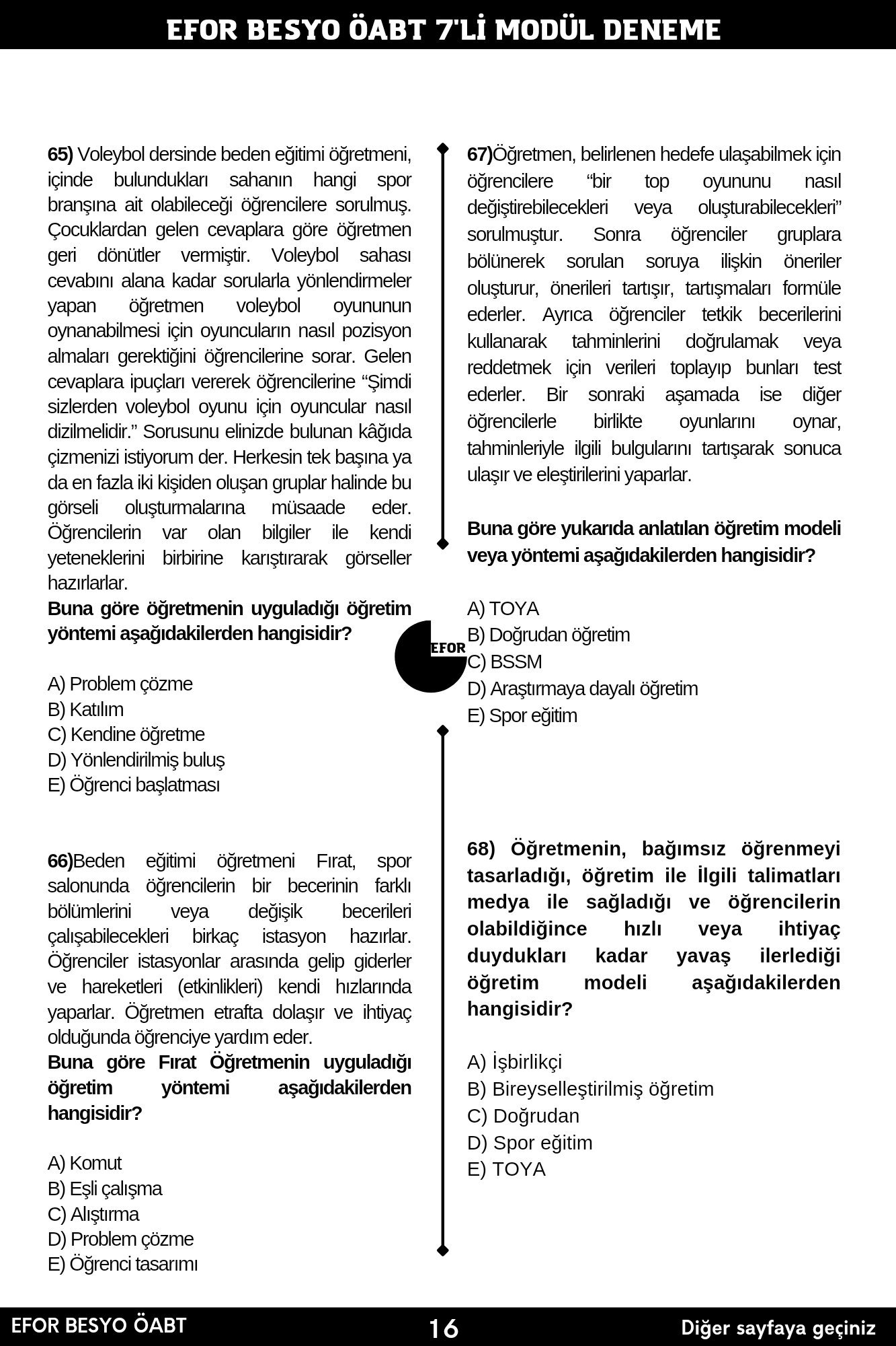 EFOR BESYO ÖABT TAMAMI ÇÖZÜMLÜ 7’Lİ FASİKÜL DENEME KİTABI